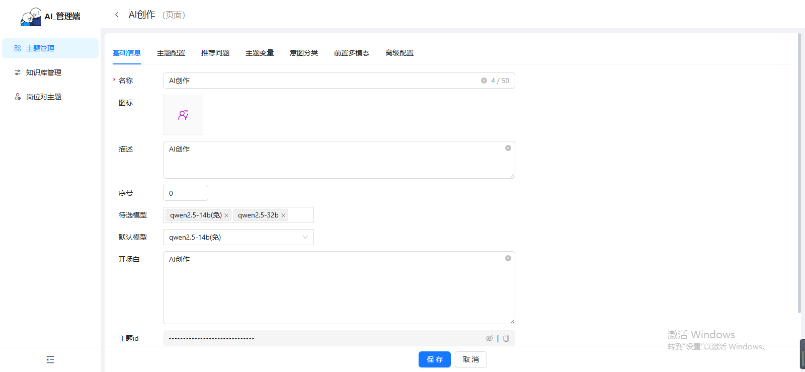 目录 搜索 展开 AI应用开发平台AI 应用开发平台简介准备工作乐创者应用Elasticsearch服务大模型服务文件存储服务知识图谱服务AI基础配置快速入门创建过程第一个对话知识库创建主题创建用户对话知识库知识库概述知识库类型知识库配置文档管理文档维护文档分块文档学习发布/下线文档标注测试召回知识库维护主题主题概述主题配置基础信息知识库配置数据查询数据分析Echarts图表总结分析数据来源乐创者BI检索乐创者BI模板召回参数召回系统提示词文档对话文档对话对话提示词页面AI创作文库对话dify推荐问题主题变量意图分类前置多模态主题预览权限控制菜单控制设计控制监控控制AI会话文库对话文档对话智能问数智能BIAI创作辅助填报案例概述业务实现实现效果 暂无相关搜索结果! AI创作 AI创作案例: 参考配置如下:主题基本配置主题配置作者:敏 创建时间:2025-05-20 20:42最后编辑:xlj 更新时间:2025-10-13 15:33 扫码关注网盛数新公众号,获取更多帮助资料 上一篇:无 下一篇:无