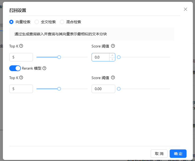 注意:召回设置仅用于召回测试使用,不会变更检索设置