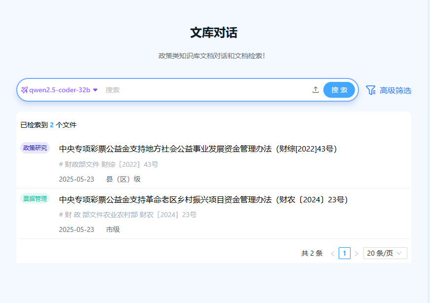注意:文库对话需要配置包含对应文档的知识库,配置后才可正常检索与对话