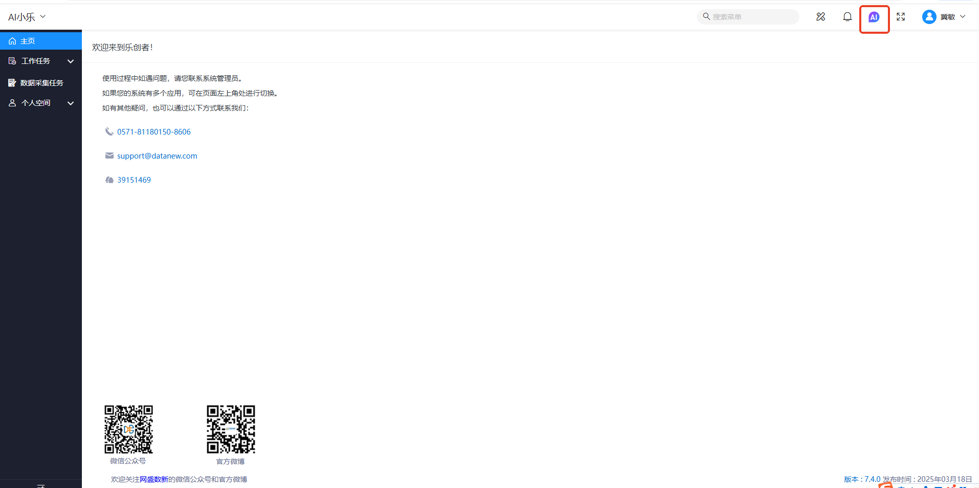 AI助力开启后用户登录乐创者门户,在对应的应用中可以看到AI访问入口,如下图所示: