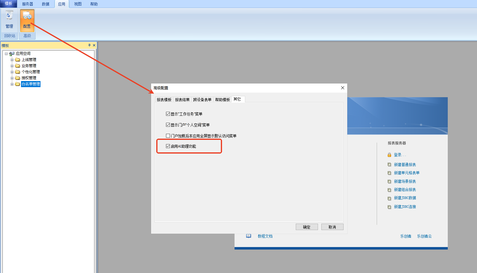 AI对话入口需要在应用配置中开启,系统管理员或者应用设计者登录设计,可以在设计器应用中进行配置,如下图所示: