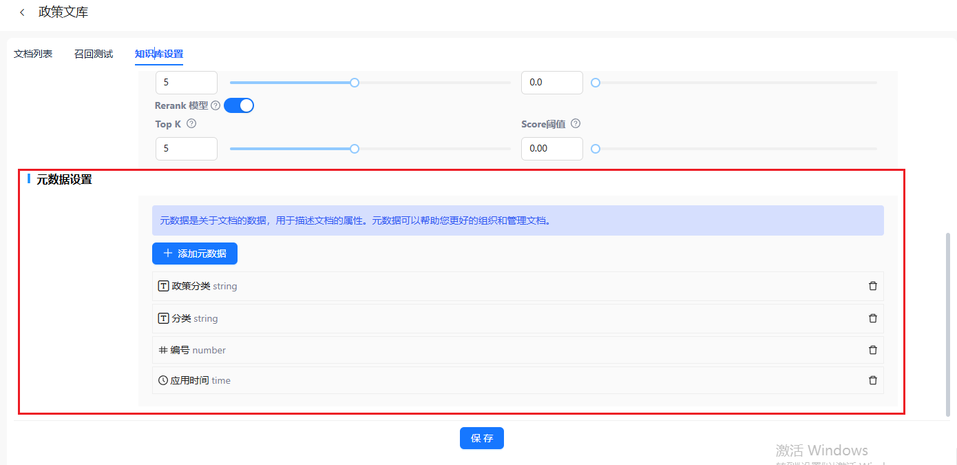 首先,我们要在知识库设置中进行配置元数据