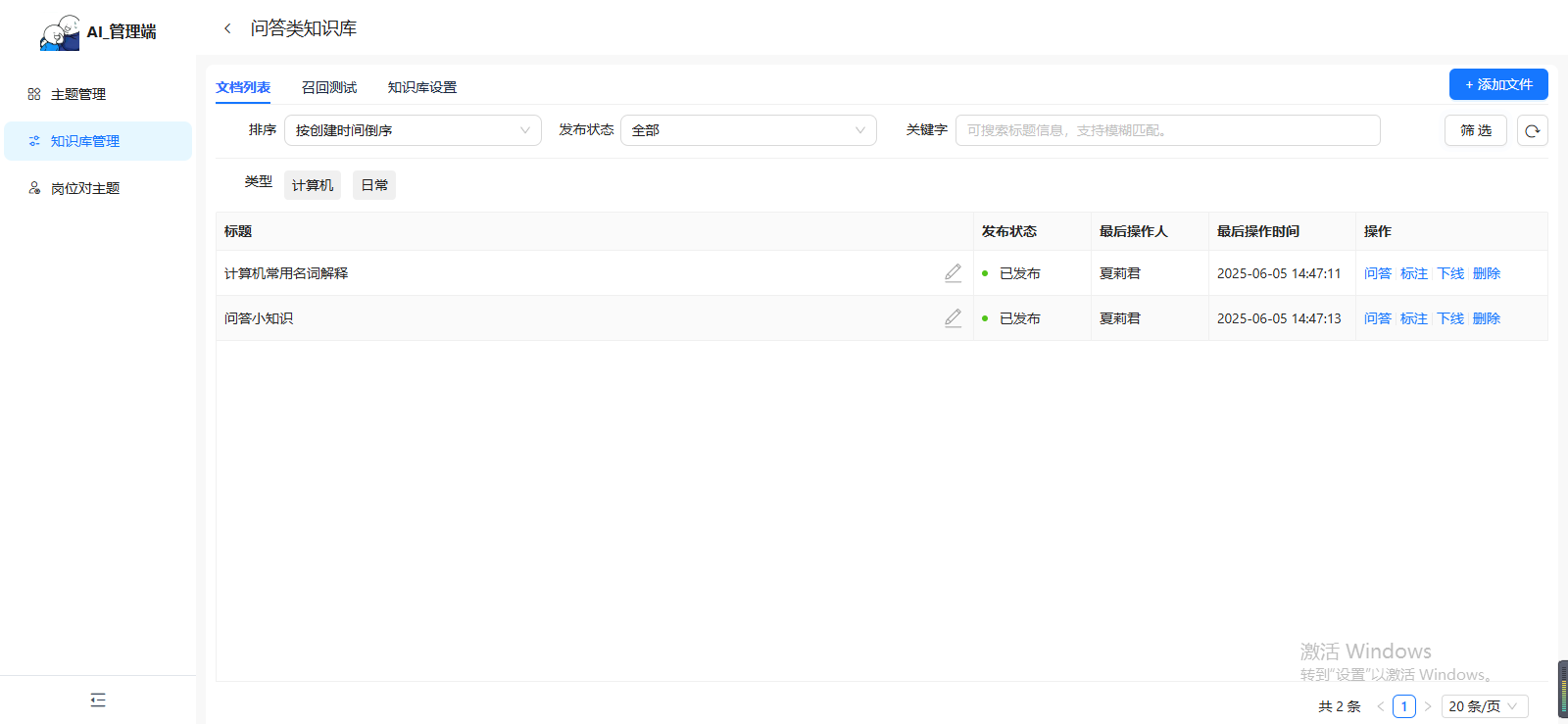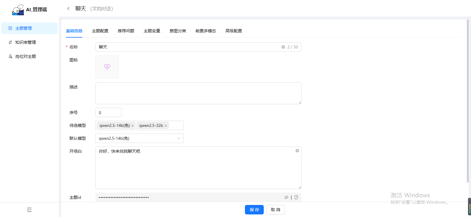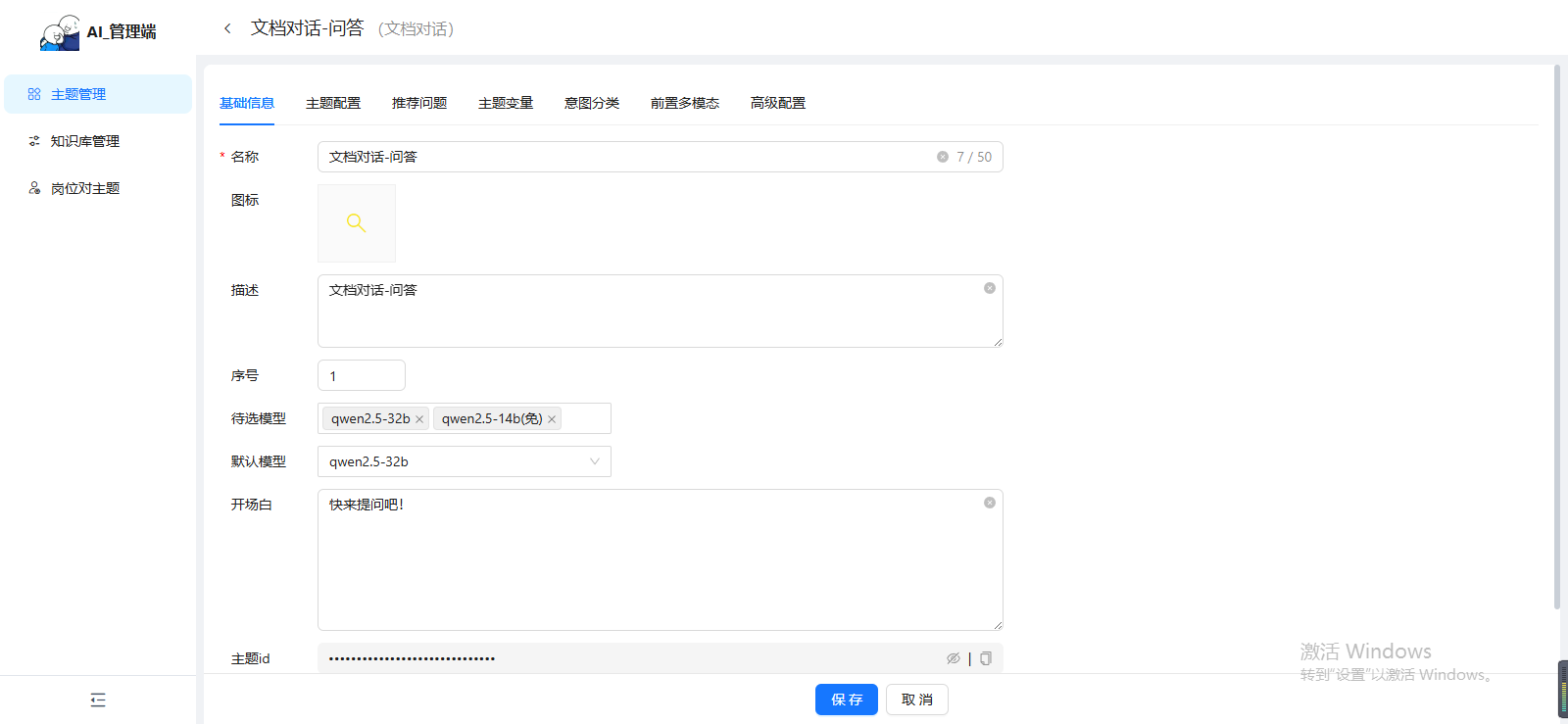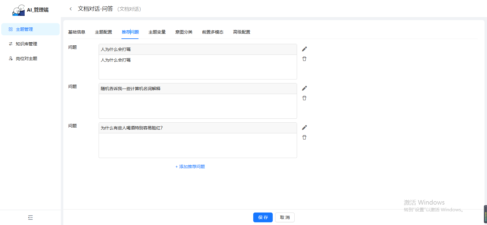 案例1: 参考配置如下:知识库知识库配置 主题基本信息主题配置推荐问题主题变量 案例2: 参考配置如下:主题基本信息主题配置作者:敏 创建时间:2025-05-20 20:39最后编辑:xlj 更新时间:2025-10-13 15:33