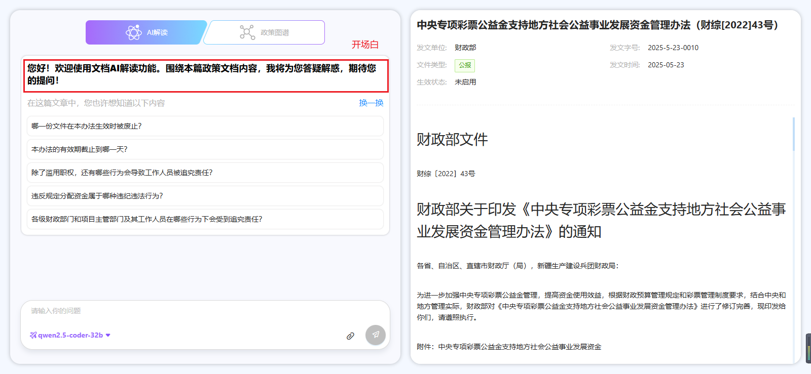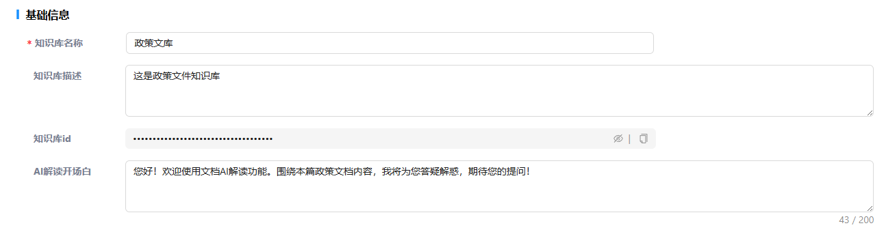 - AI解读开场白:应用于进入单独文档的对话时,AI解读前默认开场白