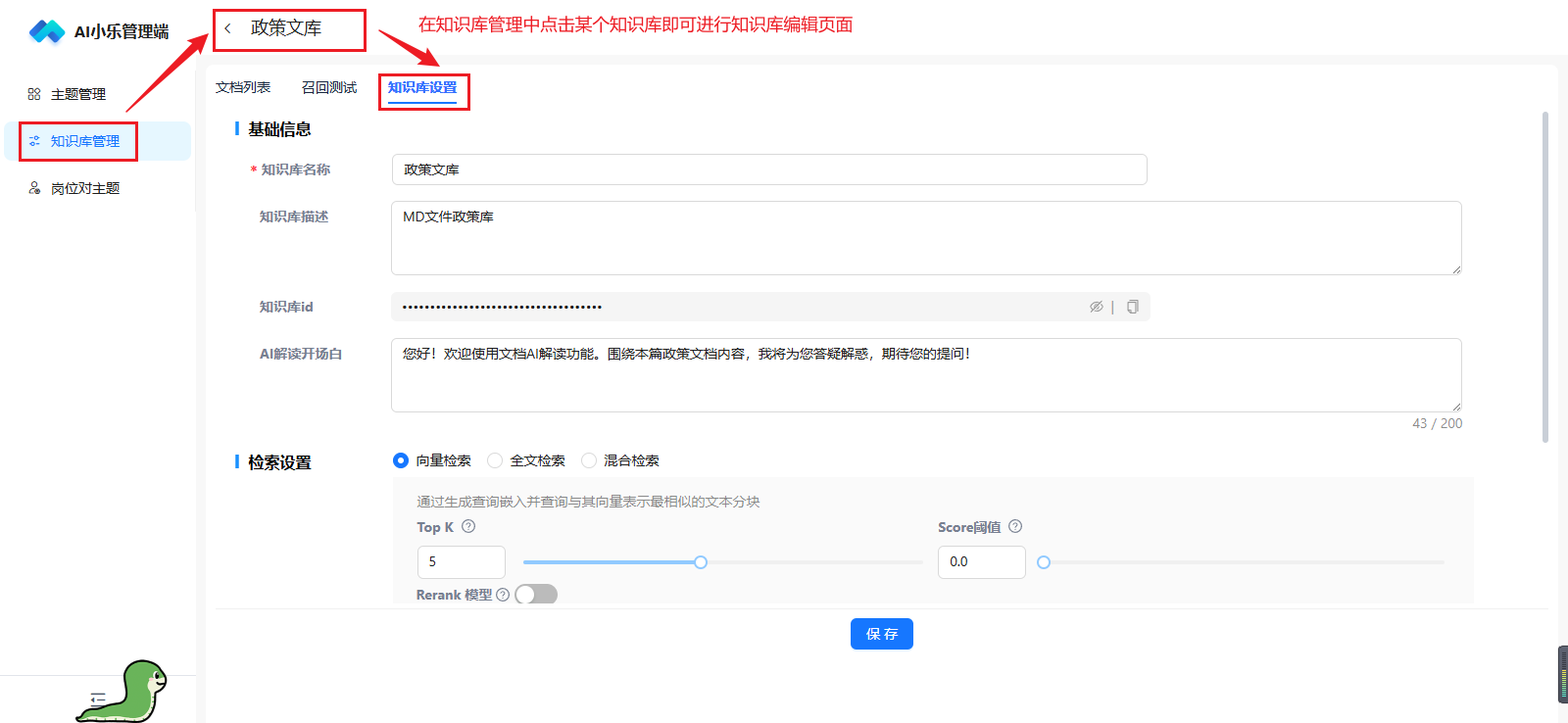 - 知识库描述:可写入知识库特点或用途,在列表中以便更好的查找与分类文档