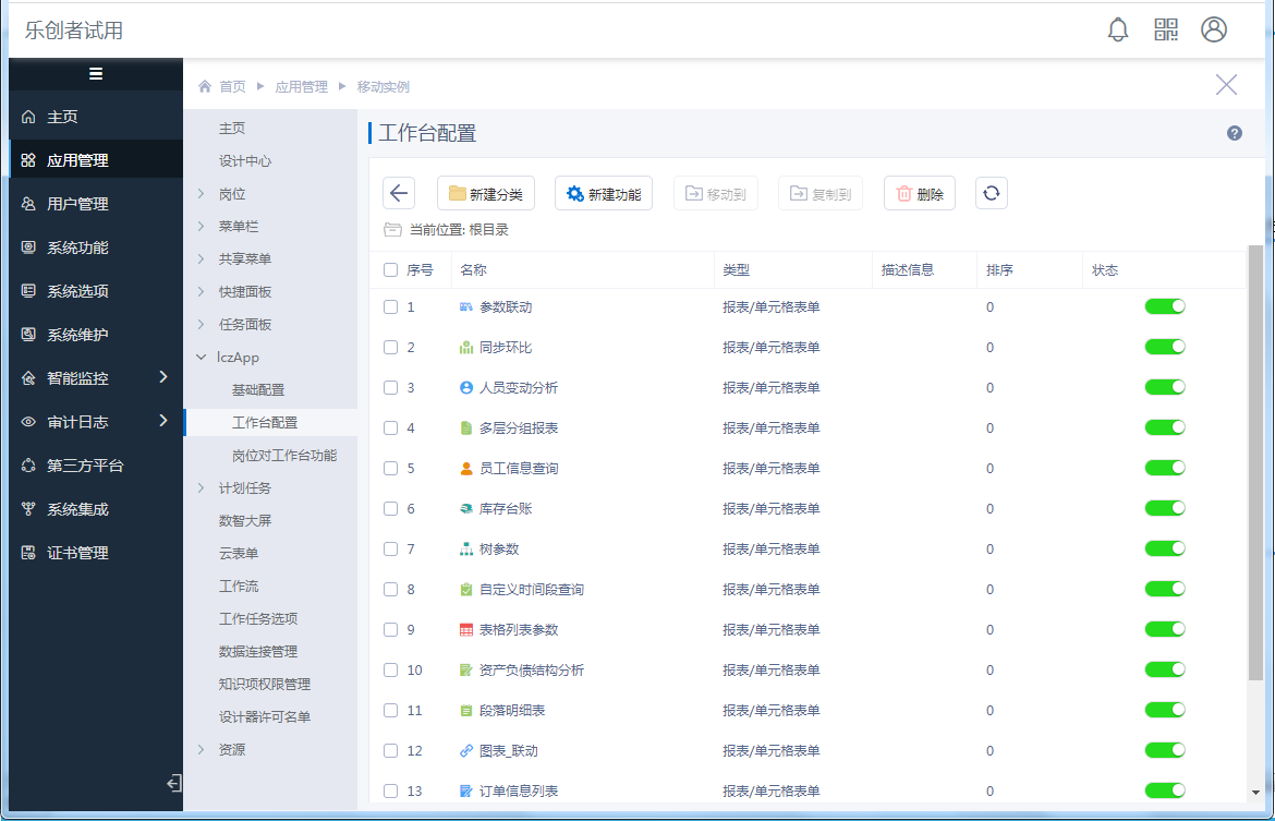lczApp主要用于为lczApp构建当前应用下工作台的功能并为其分配访问权限。配置方式有两种,具体如下:
