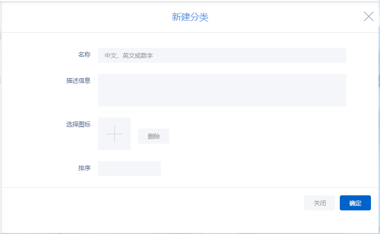 分类即工作台功能的目录,点击“新建分类”弹窗配置窗口,如下图: