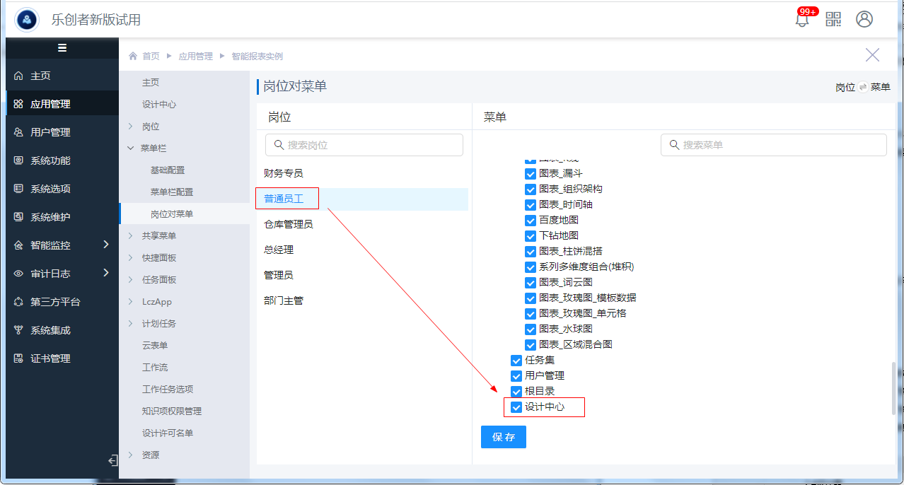 满足以上两个条件的普通用户登录门户访问该应用时,将通过“设计中心”菜单”可以看到“数据模型”入口,点击即可访问数据模型界面,可对该应用下所有数据模型查看、设计和管理(同系统管理员中应用管理中该菜单功能)。