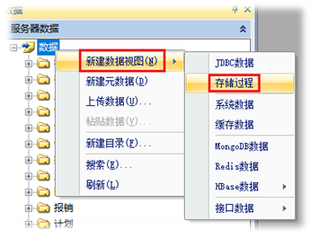 新建存储过程数据视图: