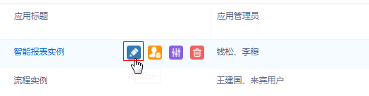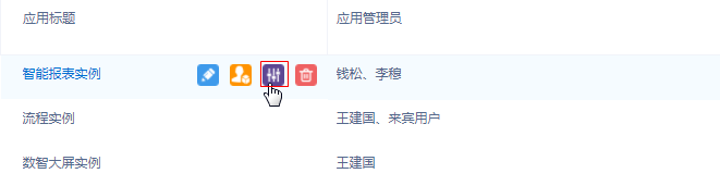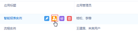 鼠标移入“启用”状态的应用,点击“配置应用管理员”按钮可选择当前系统的某个“启用”用户,将其设置为该应用的应用管理员,实现应用管理的设计功能下放给普通用户。