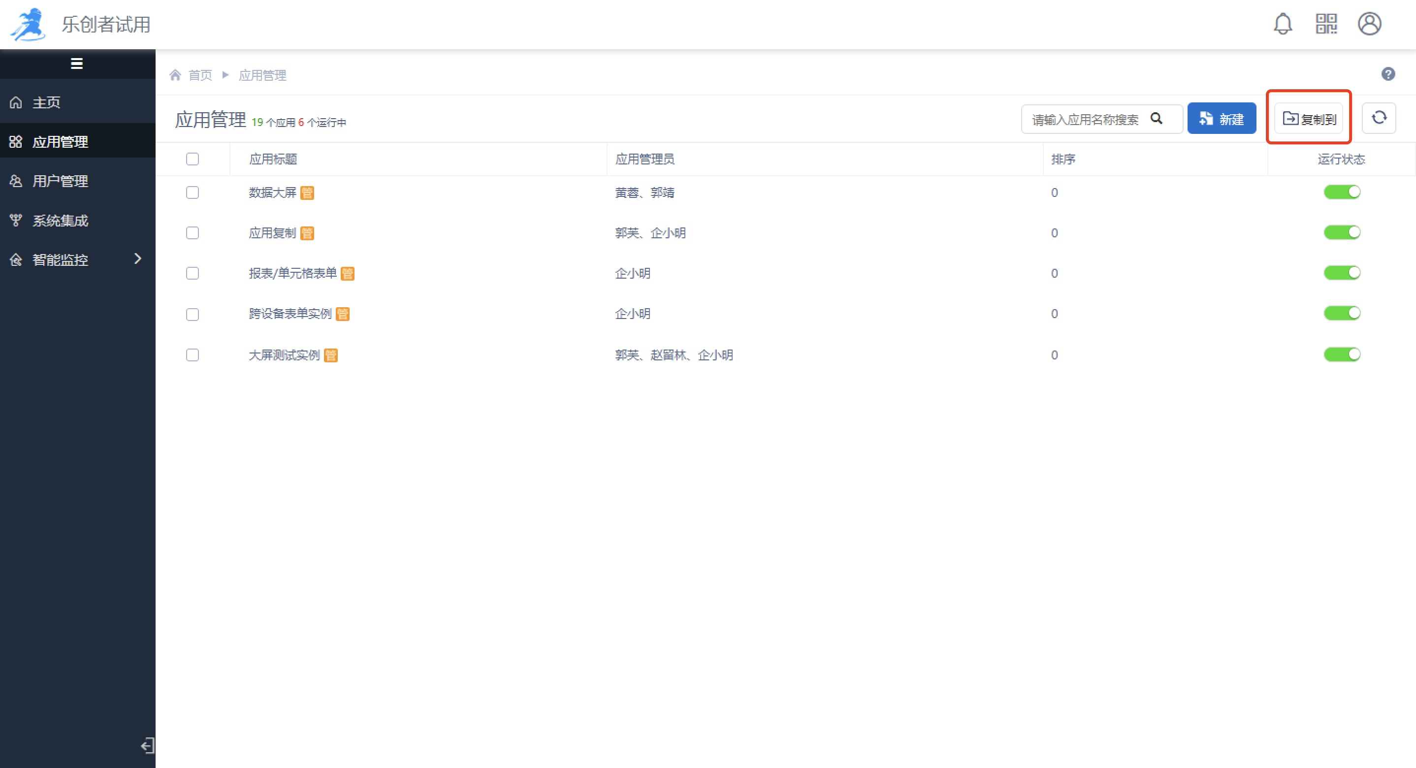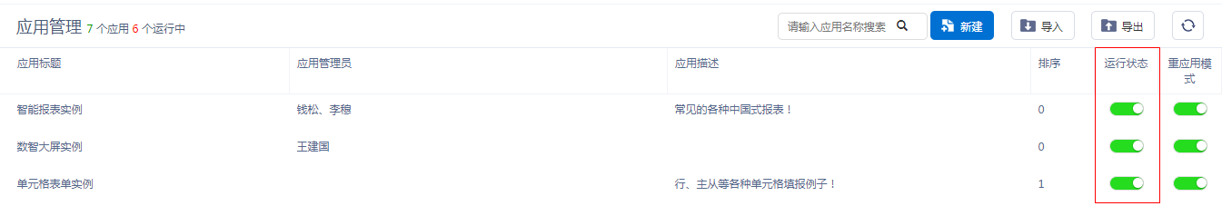 可将创建的应用进行启用或停用操作,应用停用后,该应用将不能被访问。
