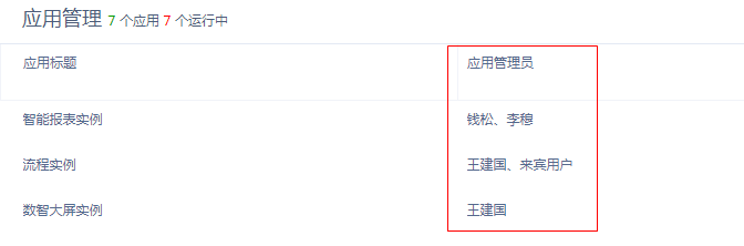 允许设置多个,配置后设置的应用管理员将显示在应用管理列表的“应用管理员”列,如下图:
