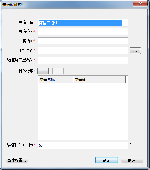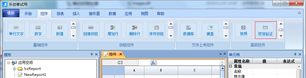 登录设计器,为单元格表单添加短信验证控件,如下图: