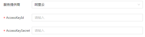 需要配置AccessKey Id 和 AccessKey Secret,用于访问身份验证,在阿里云[访问控制]或[AccessKey管理]模块申请。