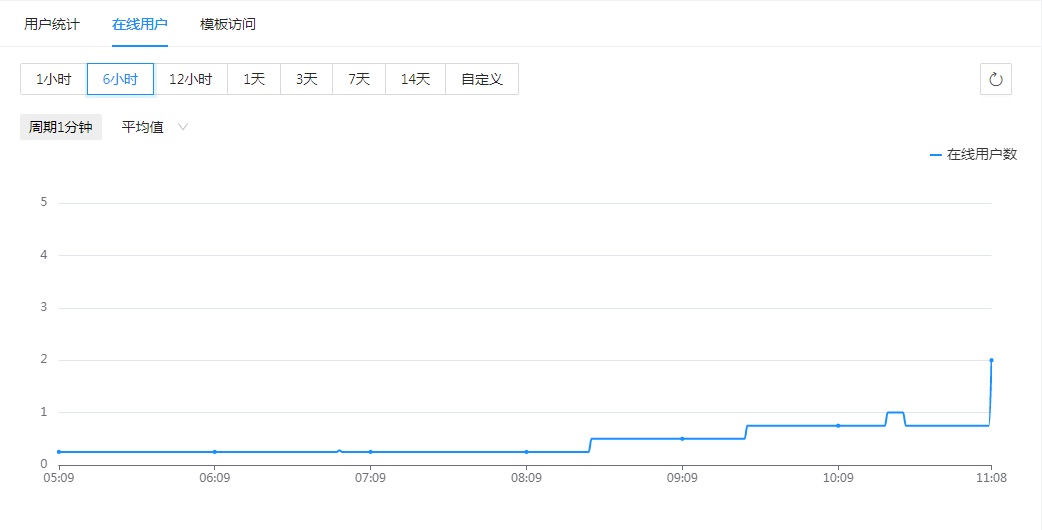 在线用户主要通过查询指定时间段内在线用数的变化趋势,分析哪些时段在线用户较多,进而判断系统什么时段使用频率较高。如下图所示: