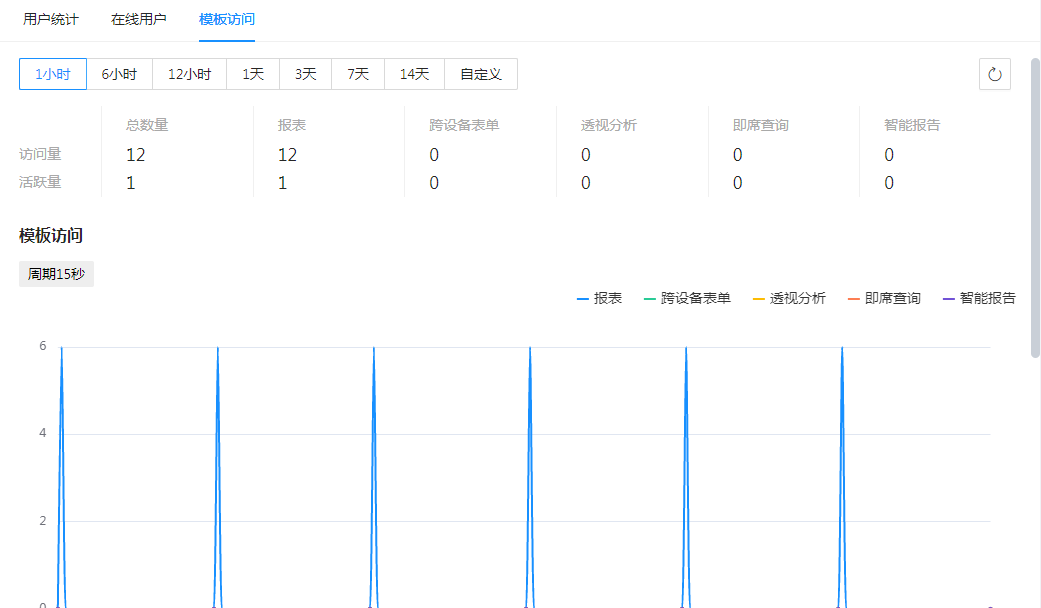 查询时间默认为[用户访问]界面中设置的时间,支持根据“客户端”、“模板类型”等条件进一步进行数据筛选。