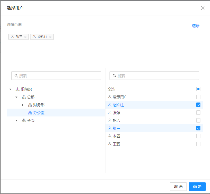 1)单租户环境下,选择的用户范围为当前系统的用户;