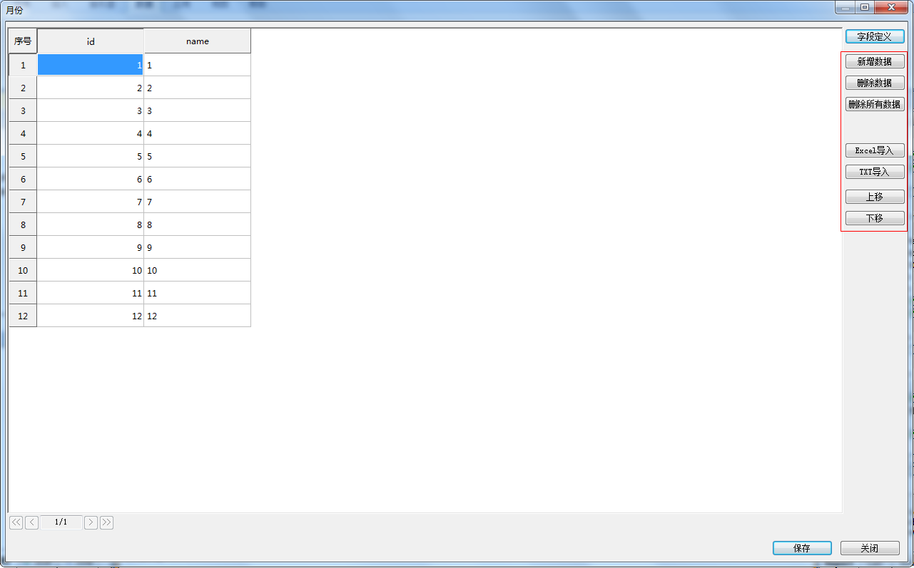 字段设置好之后,就可以通过右侧红色框中的按钮进行数据的维护,如下图: