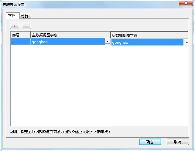 案例中的对应关系是主数据视图的工号(gonghao)分别对应子数据视图的工号(gonghao)。