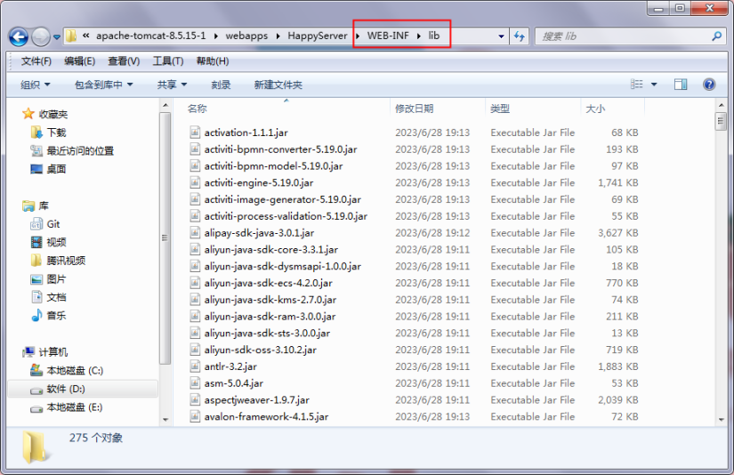 下载KINGBASE的jdbc驱动包,将其放到乐创者服务的“WEB-INF\lib”目录下,如下图:
