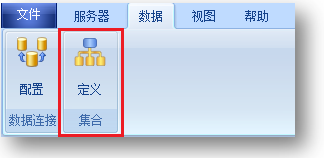 登录进入lczDesigner后,把主菜单切换到“数据”,工具栏中出现集合的按钮