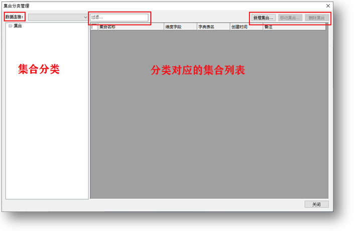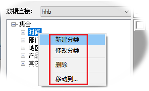 2)由于分类信息是存储在业务库中的,所以需要选择一个统一的数据连接。一旦选择了数据连接下次进入的时候就会记住了。也只有选择了正确的数据连接,所定义的分类树和集合列表会对应显示出来;