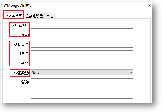 这里主要介绍数据库设置,其它配置可以参考MongoDB连接。