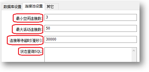 - 状态查询SQL:默认为空。状态查询SQL是用来检查数据库是否能够连接成功。如果是空,则启用默认SQL,即“SELECT 1”语句,如果所连接的数据库不支持这个语句,那么我们您就得在这里填写一句其它的语句,一般不需要填写。