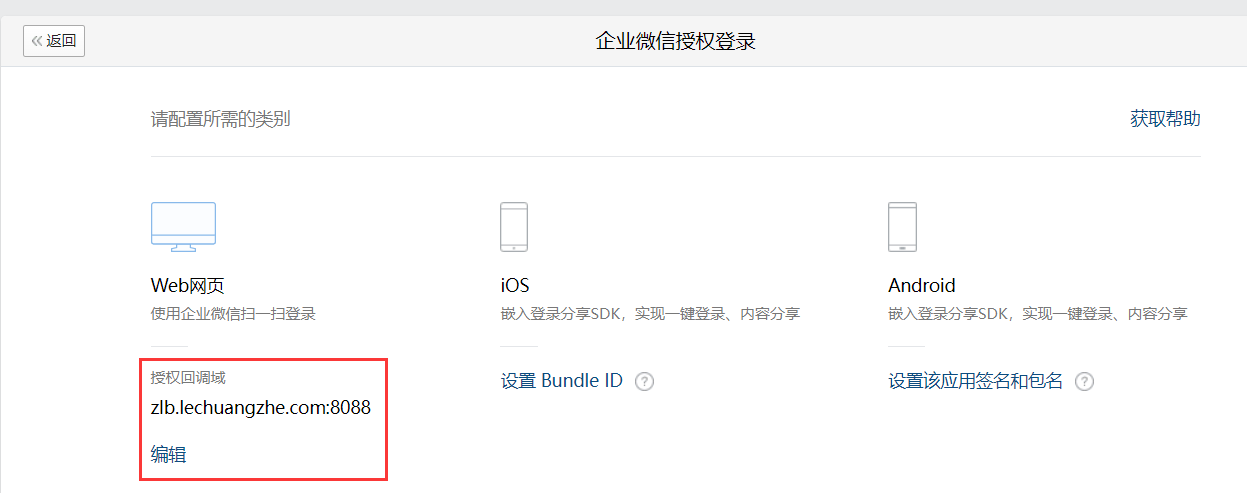 根据自己乐创者服务访问地址,配置“授权回调域”,如下图: