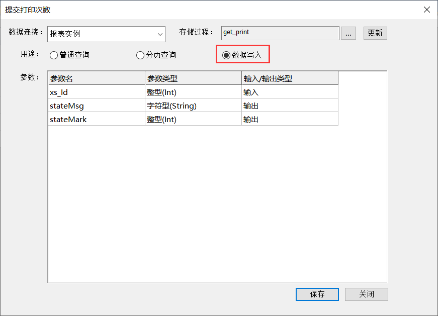 第三用途是 数据写入,主要用于表单模板的数据通过存储过程回写。