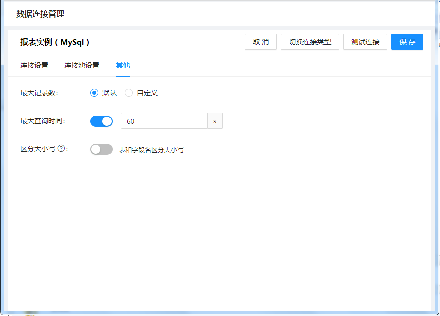 本文将介绍数据连接高级设置的配置项中各参数的意义,包括:连接池设置和其他设置。