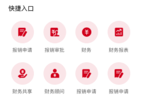 勾选后,门户访问该快捷面板功能时,快捷功能的图标颜色将跟随门户主题进行相应变化,若门户主页颜色为红色,则快捷面板显示效果如下图: