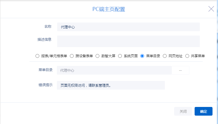 目前仅应用主页以及外层门户主页支持该功能来源,支持配置:菜单目录和错误提示。