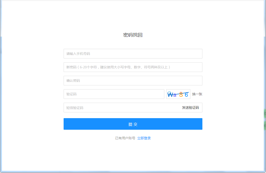 点击“忘记密码”进入“密码找回”界面,如下图: