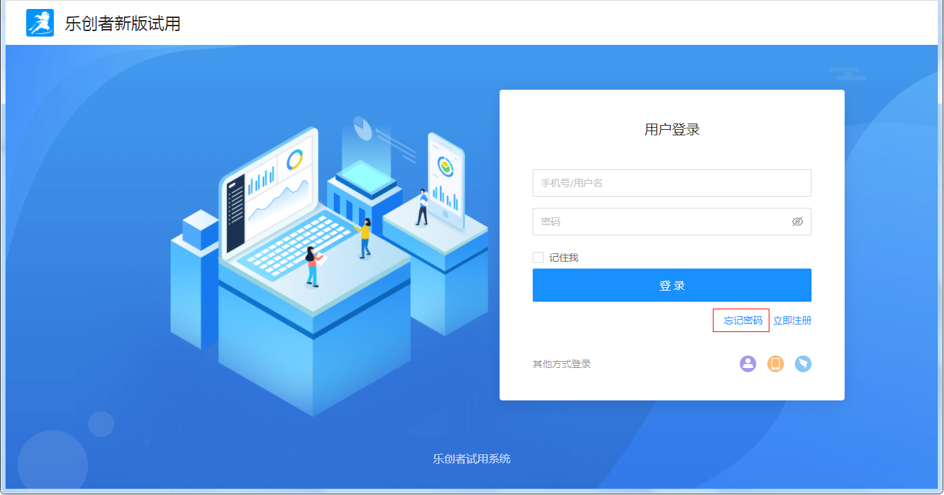系统开启“忘记密码”时,对于忘记密码的用户,在登录时,可通过手机短信协助修改密码,前提是用户绑定了手机。如下图: