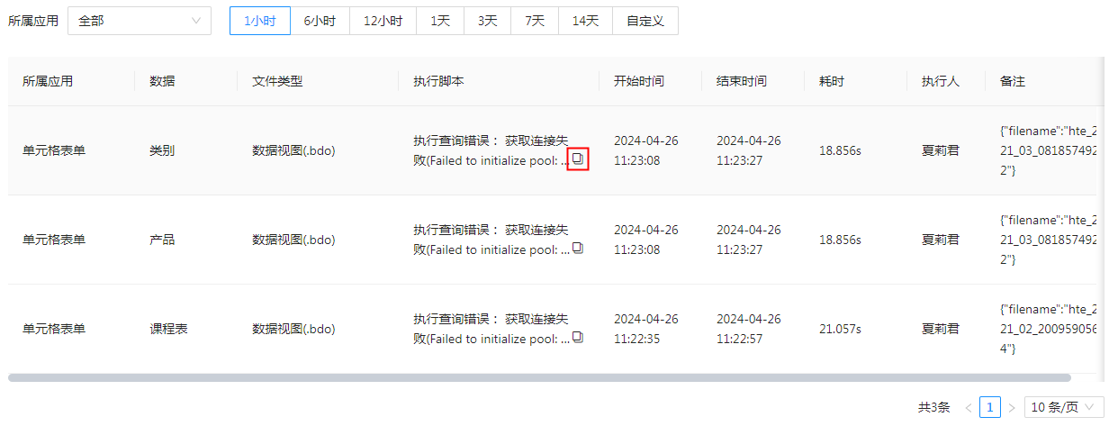 慢执行执行主要用于监控执行较慢的数据(包括数据视图、元数据、CodeTable、EasySearch),可通过执行SQL以及对应的数据源快速定位到对应数据,再根据备注信息中的上下文信息去进行问题分析,协助快速排查和定位问题。