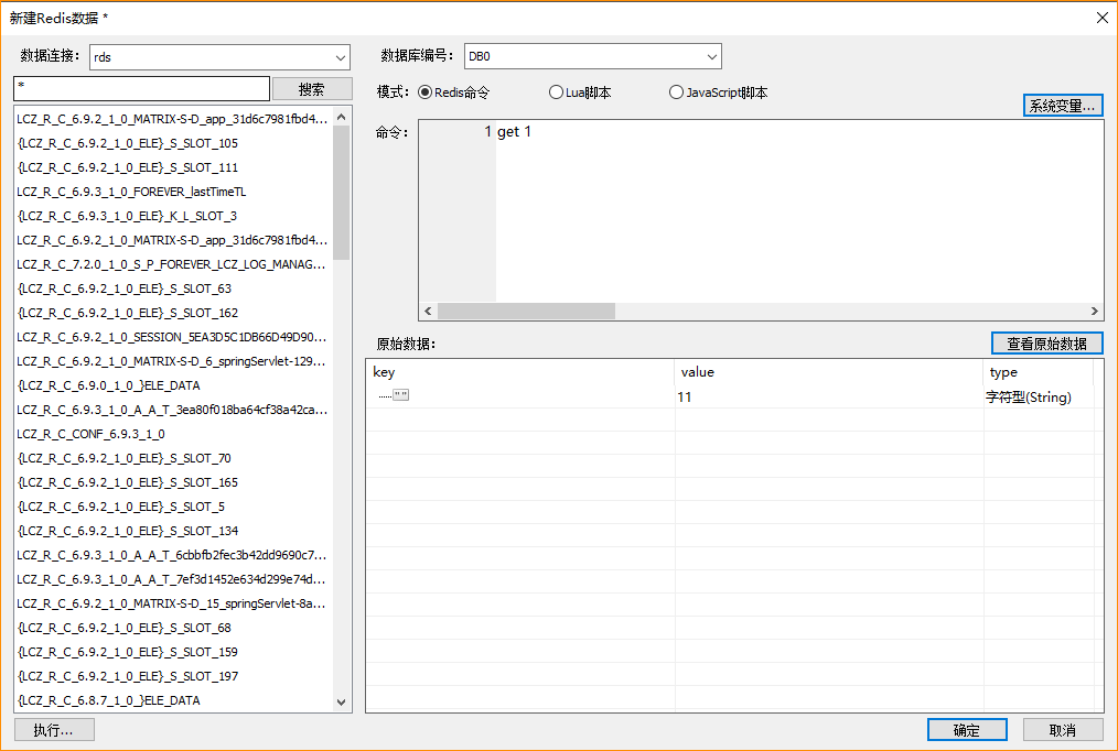 右侧可以选择不同的模式,目前支持三种模式:Redis命令,Lua脚本,JavaScript脚本