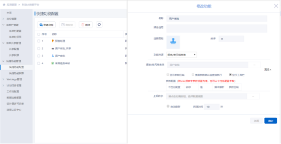 管理员登录门户,进入应用管理–>快捷功能管理–>快捷功能配置–》新建功能,选择报表。