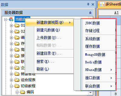 “数据”根目录或子目录右键执行“新建数据视图”菜单,可以看到目前支持的数据视图类型,如下图: