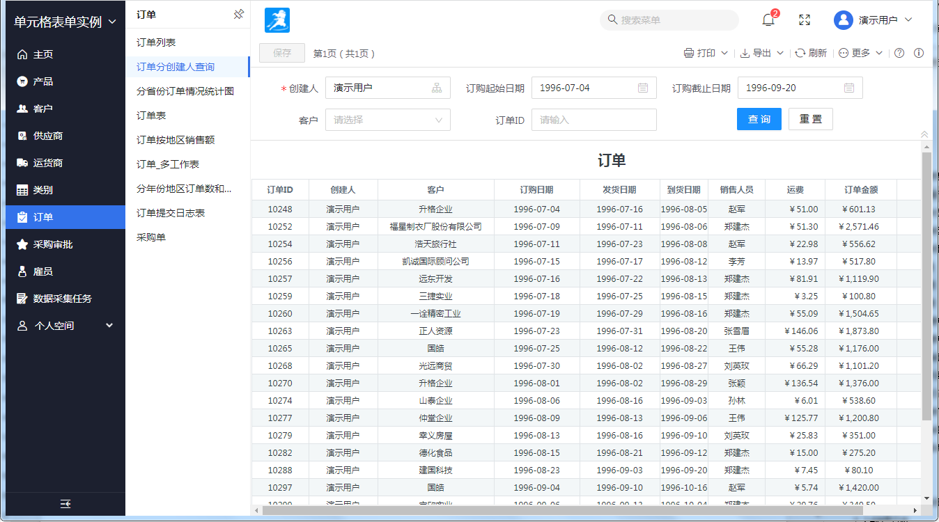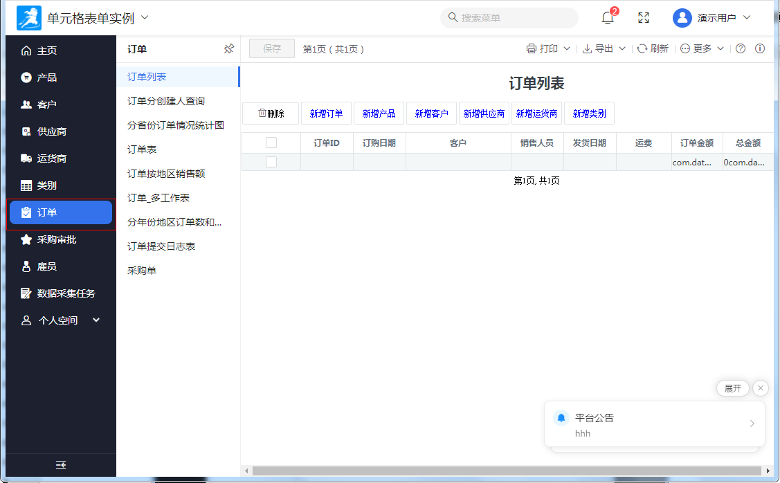 左右布局:上方显示系统logo、切换应用、搜索、头像等功能,下方左侧显示菜单栏功能、右侧显示显示主页以及打开的菜单功能页面。效果如下图: