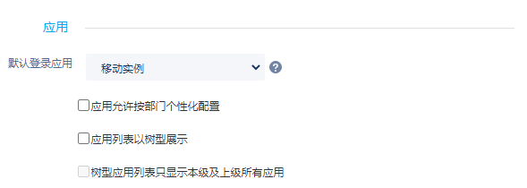 注意:部门上也允许指定默认访问应用,优先级是高于全局的默认登录应用设置的。