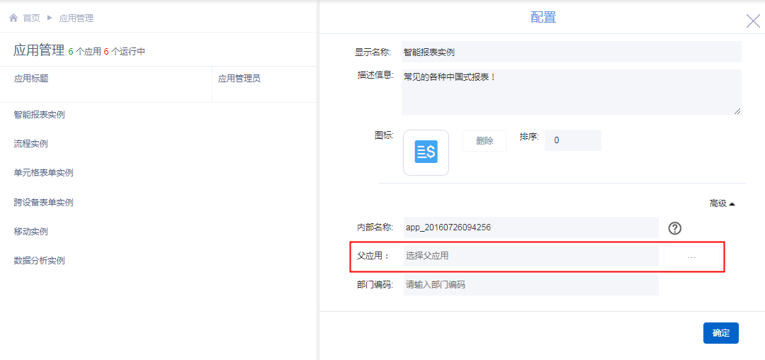 应用需要分层级显示时可以使用该功能,但是需要配合应用配置中的“父应用”功能一起使用。