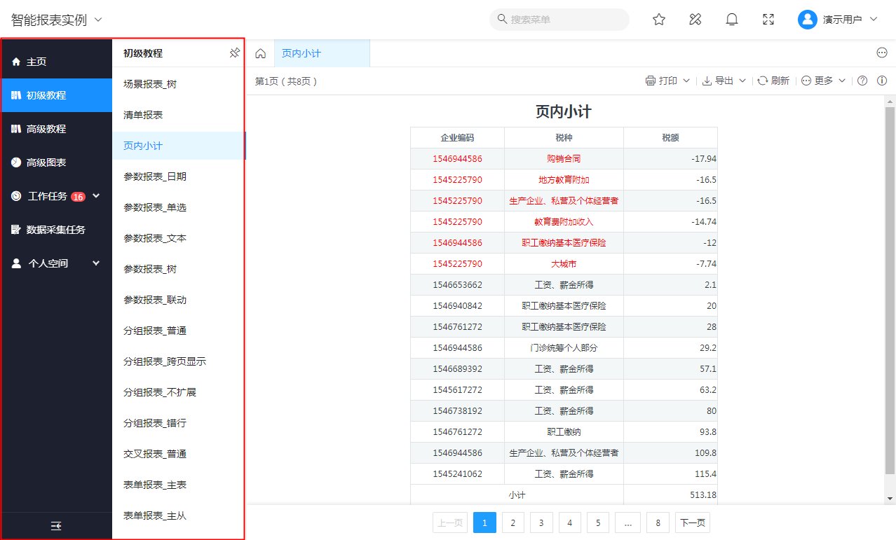 所有菜单功能作为一个完整树在一个区域展示。效果如下: