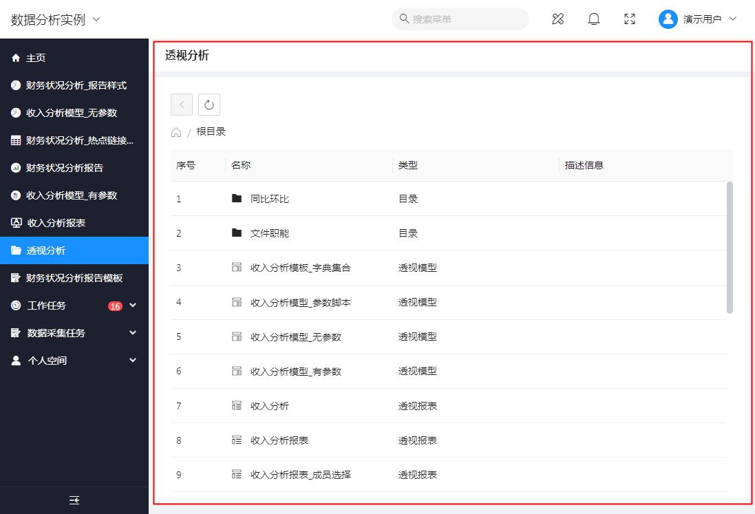 该目录下的所有目录和功能以列表的方式展示,效果如下: