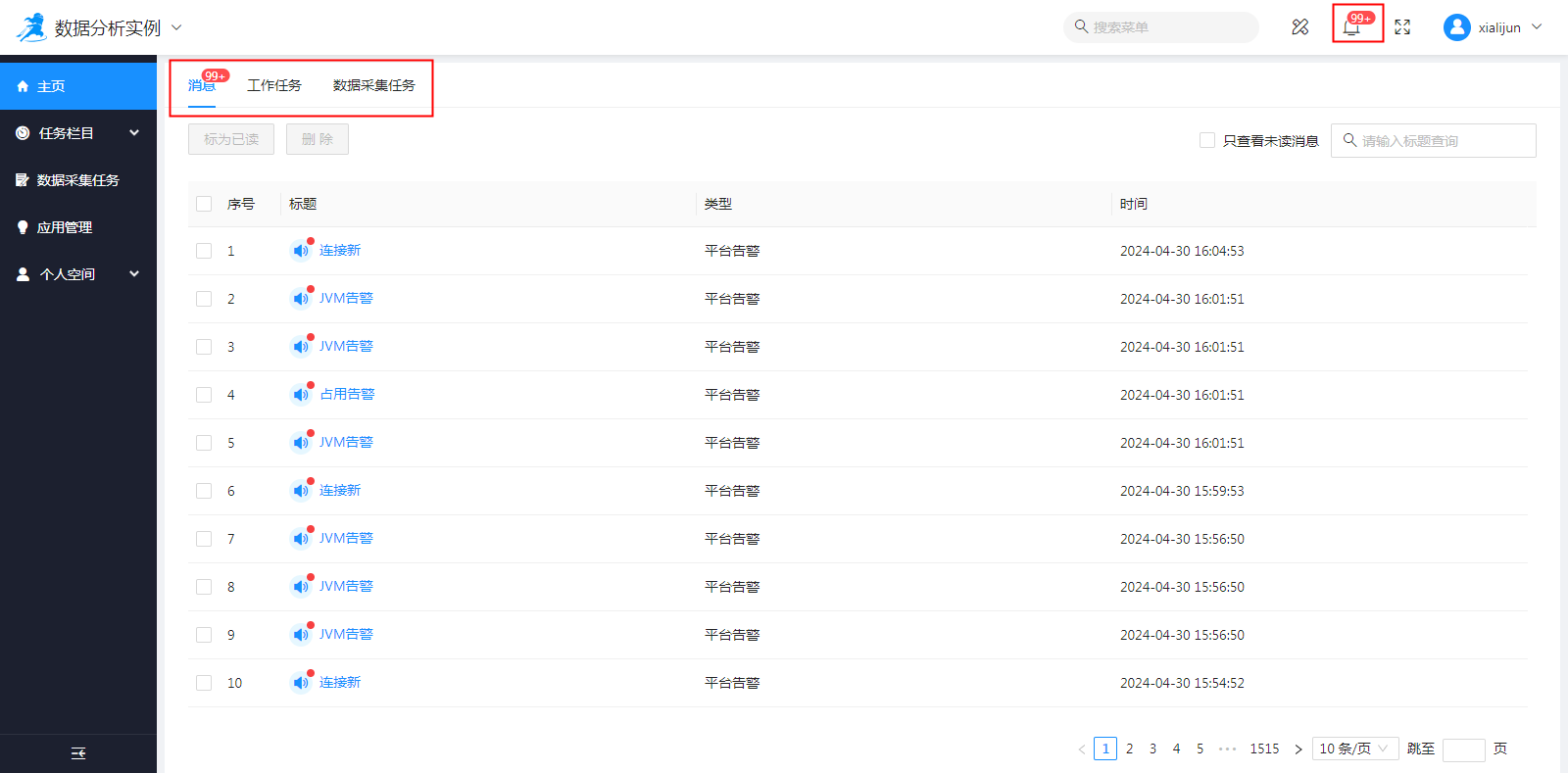 多个消息可展开进行查看,点击某消息可查看消息详情或进入对应的待办任务进行任务处理。