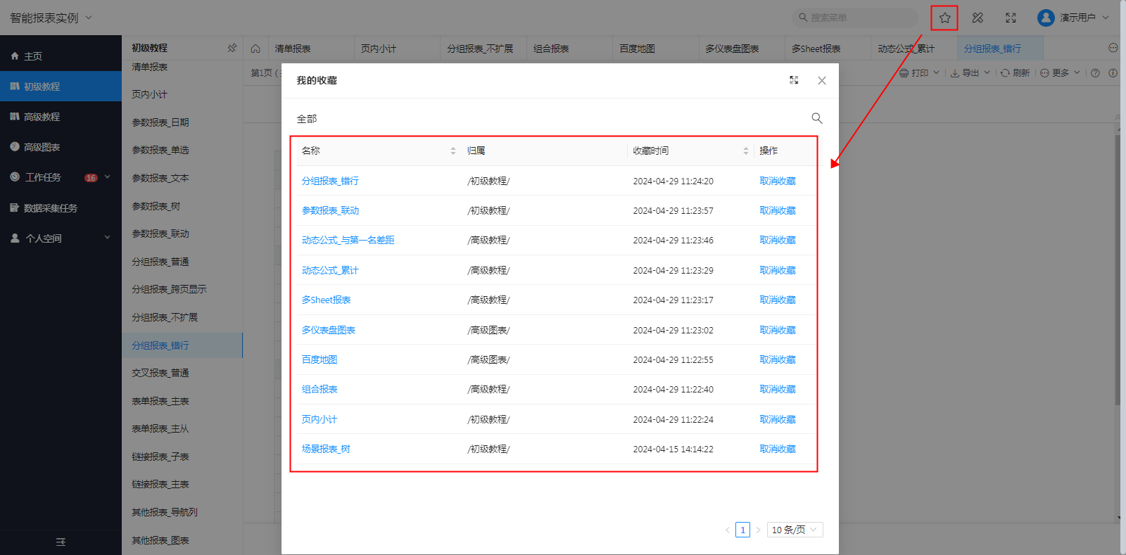 指的是菜单功能的收藏功能,开启后,菜单功能以tab页方式展示时,打开的菜单功能支持进行收藏,并且支持查看所有收藏的功能。