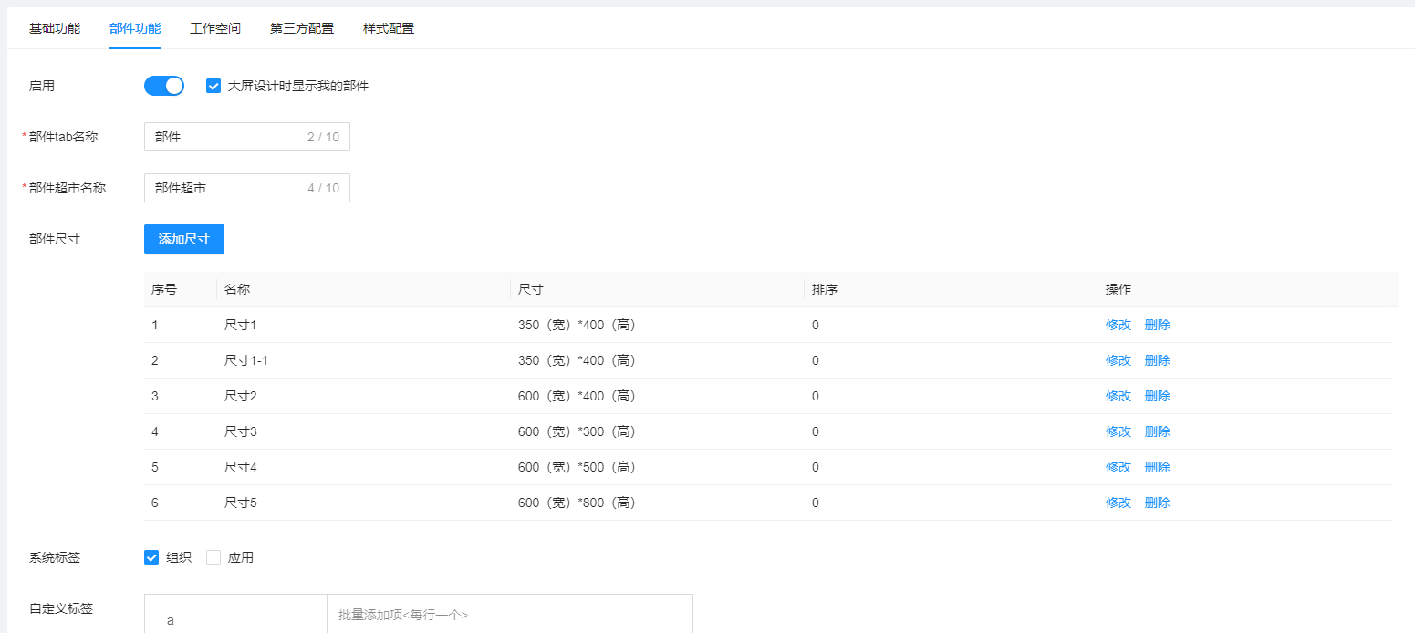 - 部件tab名称:用户可自定义部件tab名称。