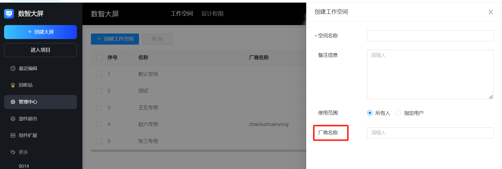 - 项目名称:用户可自定义数智大屏项目的名称。