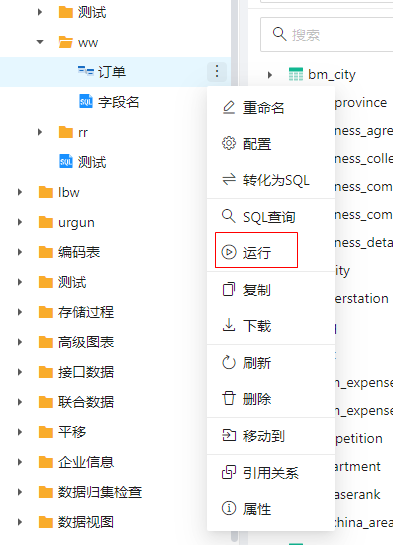 除了设计时运行,还可以在左侧模型树的菜单上点击“运行”进行当前模型的执行。