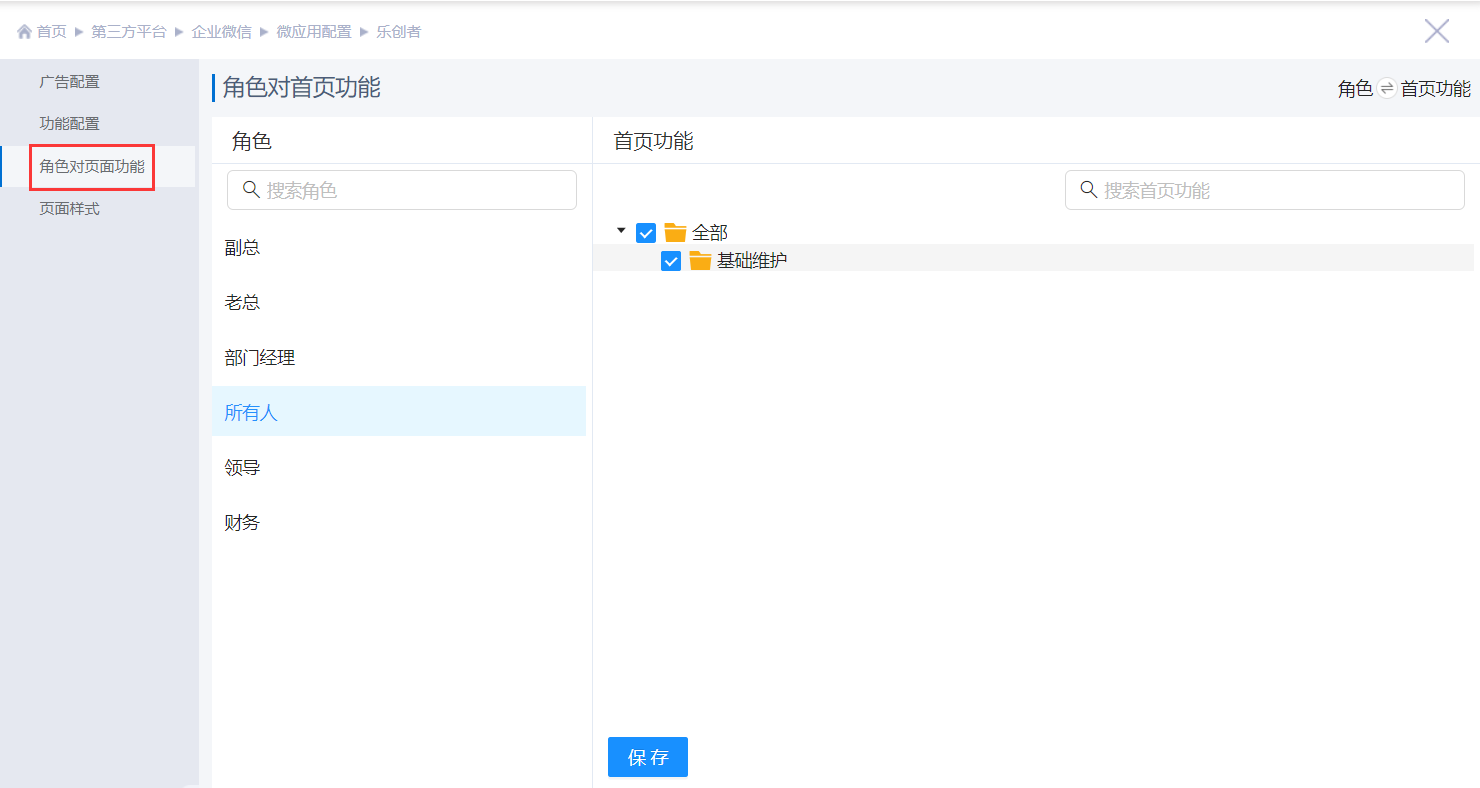 根据业务需求,配置用户角色与功能的对应关系,以便相应角色的用户可以访问到对应的功能。